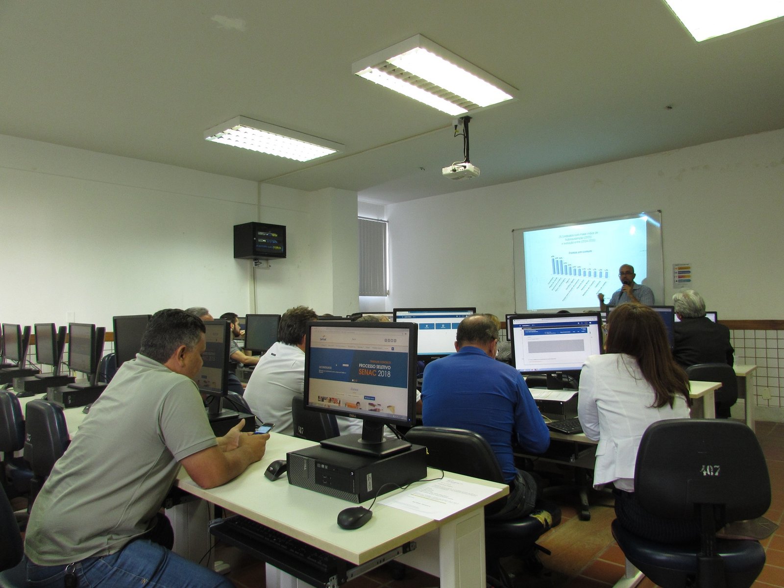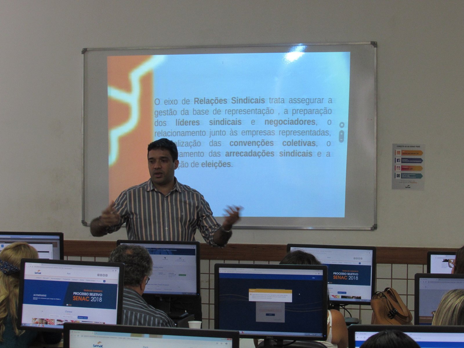 Promover a capacitação e buscar a melhoria da representatividade das entidades sindicais patronais é um dos objetivos do Sistema de Excelência em Gestão Sindical (SEGS), programa promovido pela Fecomércio PA em parceria com a Confederação Nacional do Comércio de Bens, Serviços e Turismo (CNC). Durante dois dias (20/09 e 04/10), vinte e dois dos vinte e quatro sindicatos filiados à Fecomércio PA participaram do Ciclo SEGS 2018, que foi apresentado pelos consultores sindicais da CNC, Matheus Dorneles e Alexandre Marcelo e pela assessora econômica da Federação, Lúcia Cristina Lisboa.