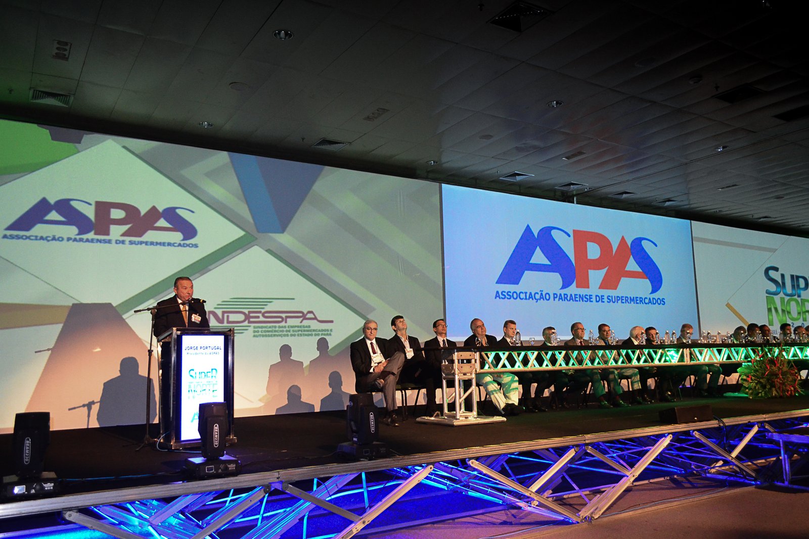 Após a palestra de abertura com doutor e livre-docente da USP, Clóvis de Barros Filho, foi composta a mesa com autoridades, organizadores do evento e parceiros. O Sistema Fecomércio Pará / Sesc / Senac esteve representado pelo presidente da entidade, Sebastião Campos. Jorge Portugal, presidente da Aspas, destacou a diversidade de alternativas e inovações que o segmento tem buscado para a superação da crise, e apontou alguns números dessa edição. "Nossa feira reúne mais de 70 expositores de produtos, serviços e tecnologias para supermercados, magazines e outros segmentos do varejo, com mais de 250 marcas representadas" - pontuou. Portugal destacou ainda a reedição do projeto 'Super Norte Solidária', que ao final da feira, destina os produtos não perecíveis expostos nos estandes a instituições da caridade.