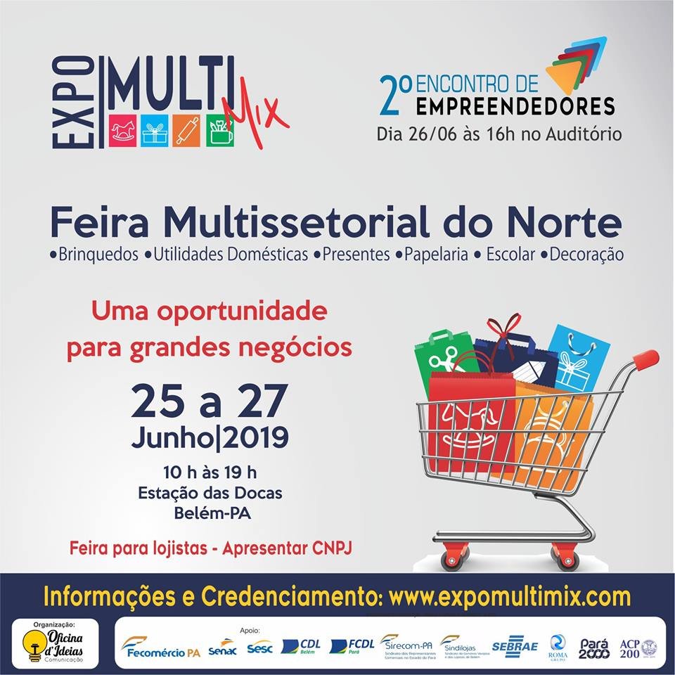 A Expo MultiMix 2019 (Feira Multissetorial do Norte) terá início amanhã (25) às 10h e segue até a próxima quinta-feira (27), na Estação das Docas. O evento reúne indústrias e importadoras dos ramos de brinquedos, utilidades domésticas, presentes, papelaria, material escolar, decoração e permite aos empreendedores e lojistas, o fortalecimento no relacionamento com clientes e a negociação direta com gerentes de fábricas. A Expo MultiMix 2019 conta com o apoio do Sistema Fecomércio Pará, Sesc e Senac.