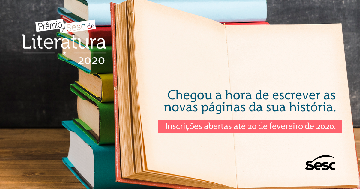 Já estão abertas as inscrições para o Prêmio Sesc de Literatura, um dos mais importantes do país. Os autores estreantes podem inscrever suas obras inéditas nas categorias Romance ou Conto. Os interessados têm até 20 de fevereiro para concluir o processo de inscrição, que é gratuito e online. O regulamento completo pode ser acessado em www.sesc.com.br/portal/site/premiosesc.