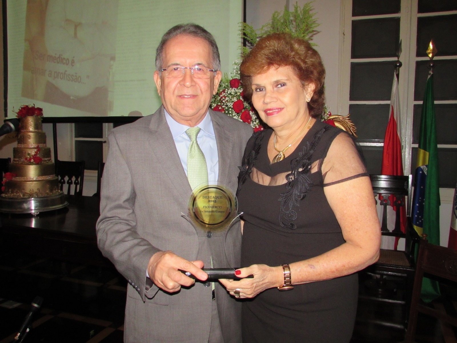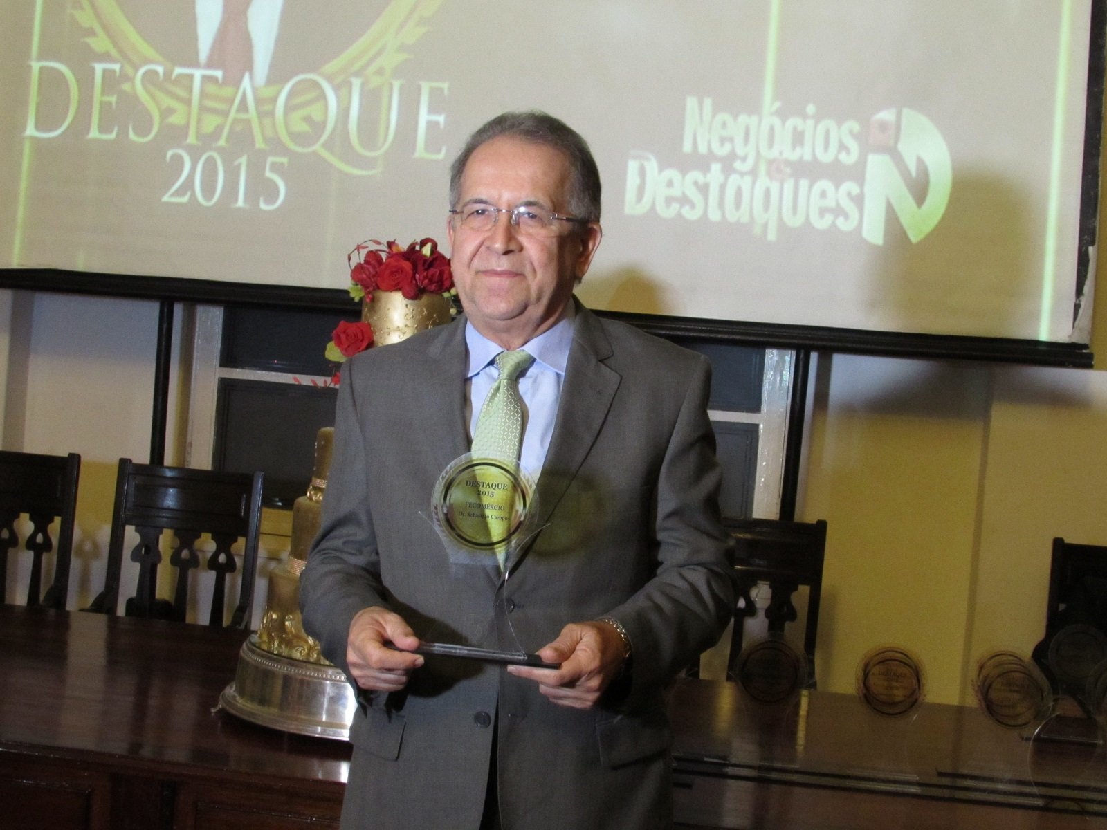 O salão nobre da Associação Comercial do Pará (ACP) foi palco da premiação promovida ontem (16) pela revista Negócios & Destaques. A premiação homenageou diversos empresários, gestores e autoridades que contribuem positivamente para o desenvolvimento socioeconômico do estado do Pará. O presidente do Sistema Fecomércio / Sesc / Senac Pará, Sebastião Campos, foi um dos premiados escolhido como “Destaque de 2015”.