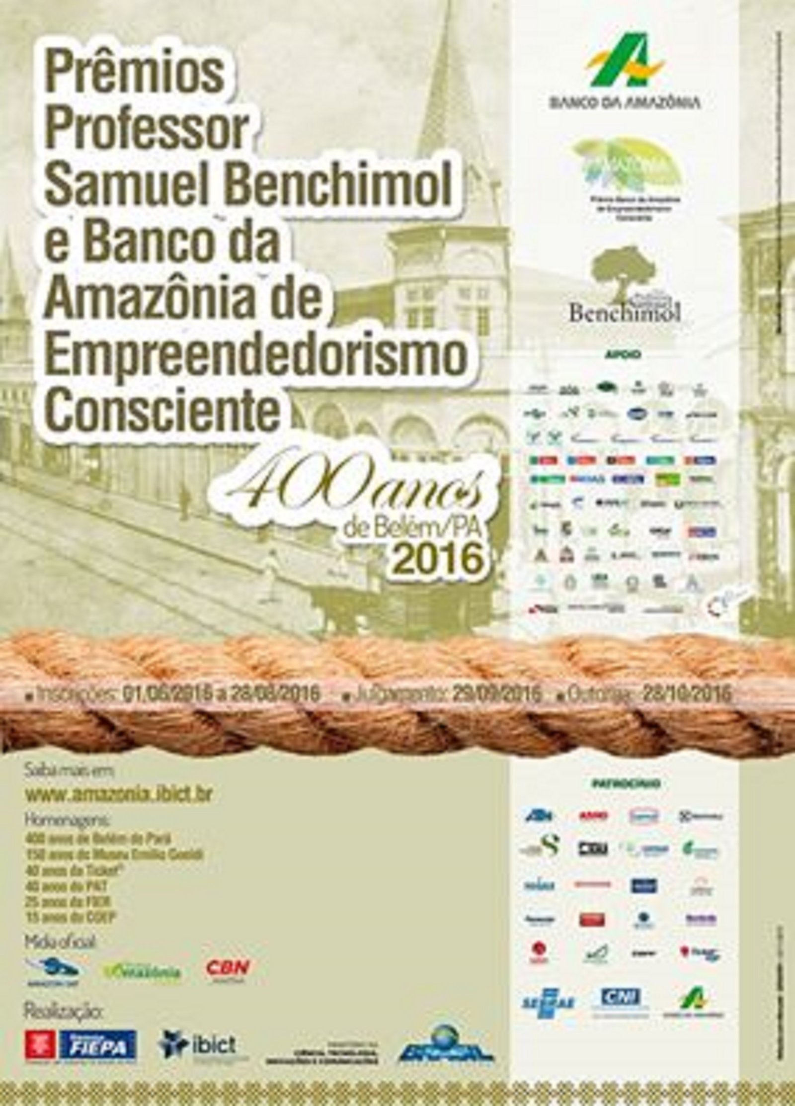 Para o presidente do Sistema Fecomércio / Sesc / Senac Pará, Sebastião Campos, o apoio institucional da Fecomércio-PA na divulgação dos editais, valoriza o conjunto dos empreendedores e das práticas de inovação no estado. “A Fecomércio-PA apoia esta premiação por entender a importância de valorizarmos as empresas e os pesquisadores que desenvolvem práticas sustentáveis em nossa região” – comentou. As inscrições devem ser feitas pelo site www.amazonia.ibict.br