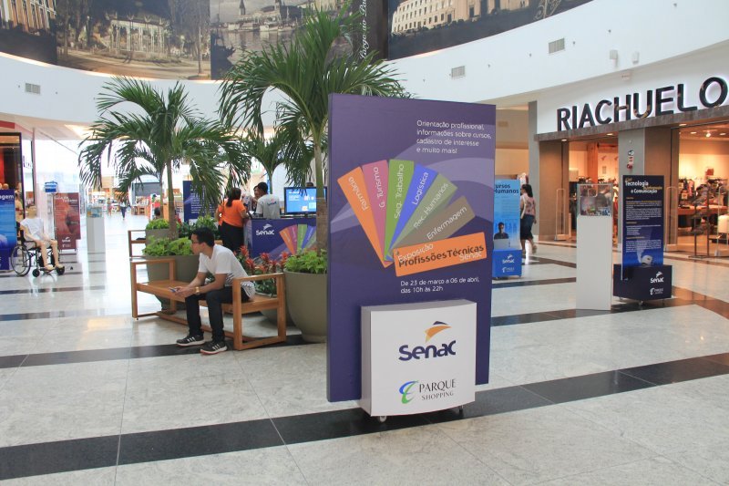 Com totens informativos sobre os principais cursos Técnicos de Nível Médio e um quiosque de atendimento localizado no 1º piso, o Senac Pará promoveu a orientação profissional, divulgou a programação de cursos do quadrimestre e realizou cadastro de interesse ao longo dos 15 dias de exposição.