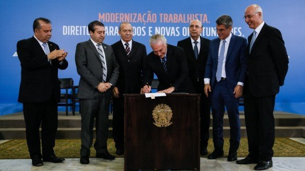 O texto que promove a reforma trabalhista foi sancionado pelo presidente da República, Michel Temer, em cerimônia realizada no Palácio do Planalto, em 13 de julho. A sanção aconteceu dois dias após a aprovação do PLC n° 38/2017 pelo Senado Federal.