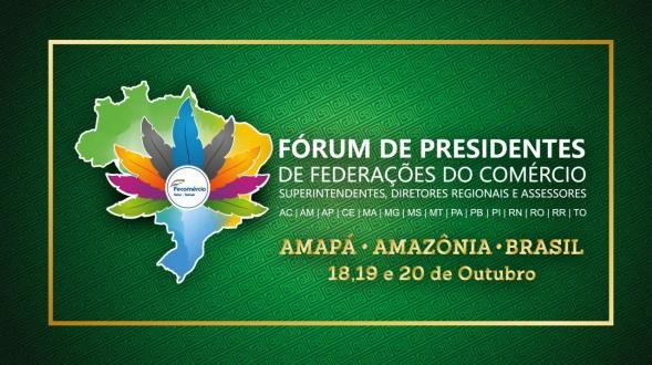 Entre os dias 18 a 20 de outubro, a capital do Amapá sediará mais um Fórum de Presidentes e Superintendentes de Federações do Comércio e Diretores do Sesc e Senac. O evento promovido pelo Sistema Fecomércio Amapá reúne dirigentes do Sistema Comércio dos estados do Amapá, Amazonas, Acre, Maranhão, Mato Grosso, Pará, Paraíba, Rio Grande do Norte, Piauí, Rondônia, Roraima, Tocantins, Mato Grosso do Sul, Minas Gerais e Ceará.