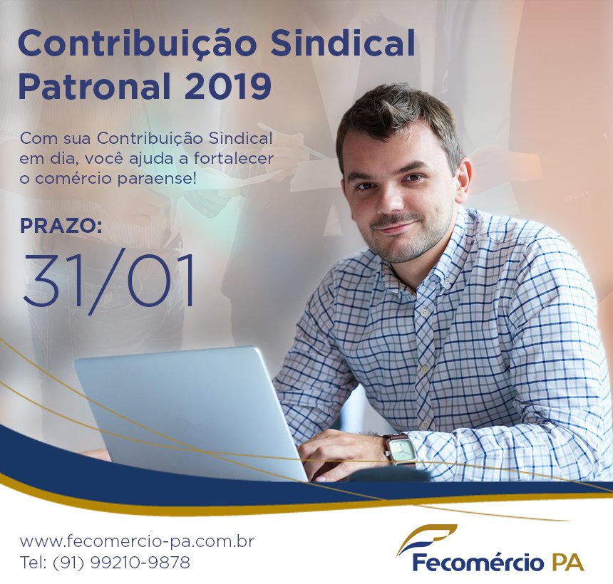 Os empresários que integram a Federação do Comércio de Bens, Serviços e Turismo do Estado do Pará (Fecomércio PA) já podem efetuar o pagamento da contribuição sindical 2019. O recolhimento da contribuição sindical é fundamental para a defesa dos interesses do segmento do comércio de bens, serviços, turismo e garante benefícios como assessoria jurídica, econômica e acesso a instituições como Sesc e Senac. A guia pode ser retirada no site da Fecomércio PA: www.fecomercio-pa.com.br