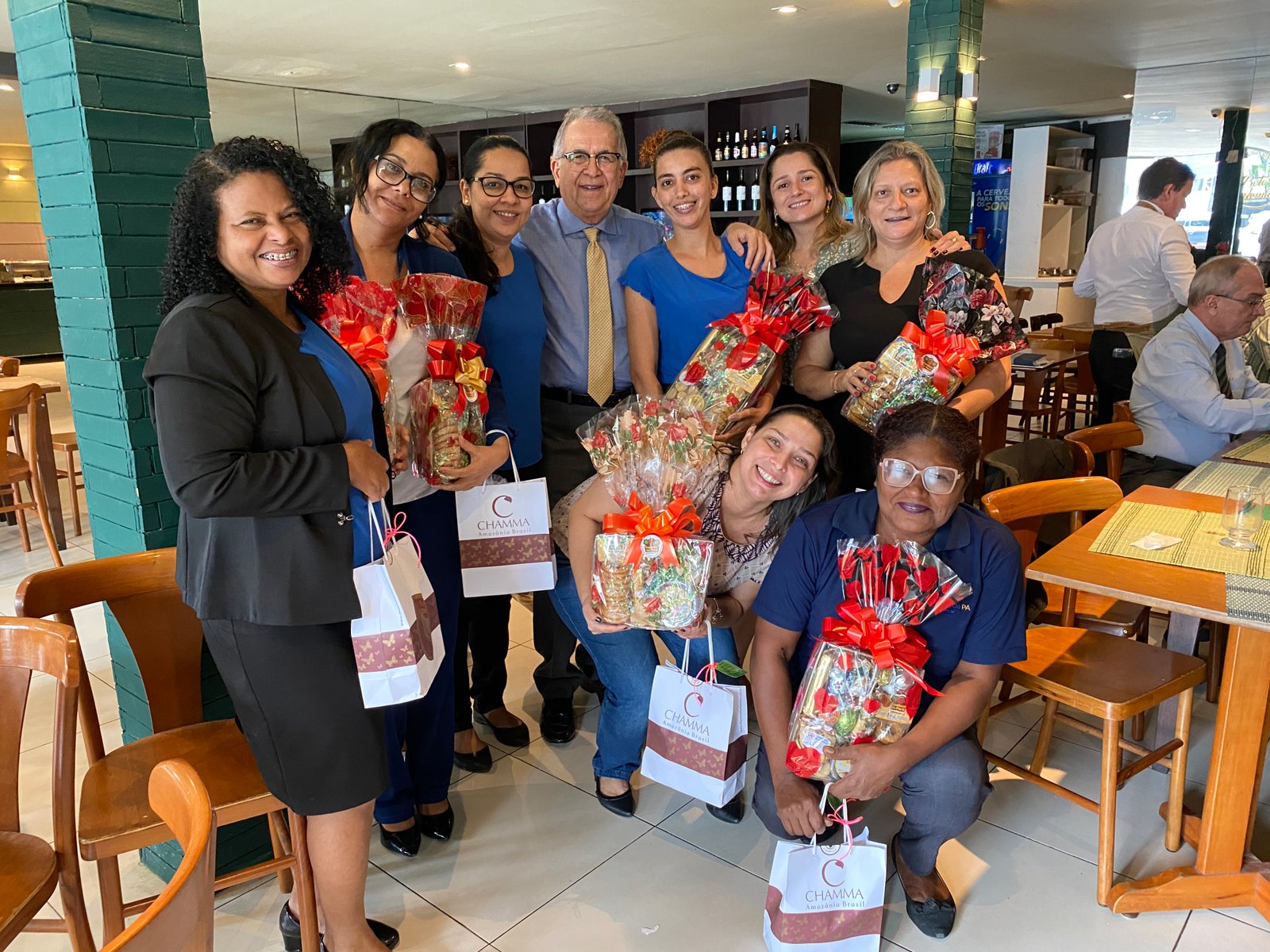 Além das colaboradoras da Fecomércio-PA, também estavam presentes o Diretor Financeiro Pedro Nasser, o Assessor Jurídico Manoel Pedro, o Superintendente Walmyr Santos, entre outros.