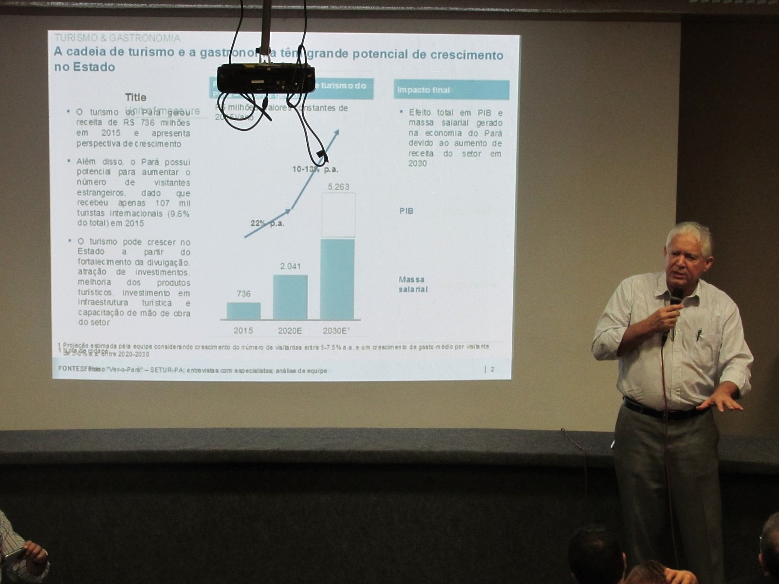 A platéia formada por empresários, acadêmicos, engenheiros agrônomos, donos de restaurante, entre outros, acompanhou as análises do Pará 2030, que acredita que os segmentos de Turismo e Gastronomia podem crescer em volume de negócios, emprego e renda, cerca de 10% ao ano até 2030. De acordo com o programa, esse crescimento deve partir de iniciativas como divulgação, atração de novos investimentos, melhoria dos produtos turísticos, investimento em infraestrutura e qualificação da mão de obra local.