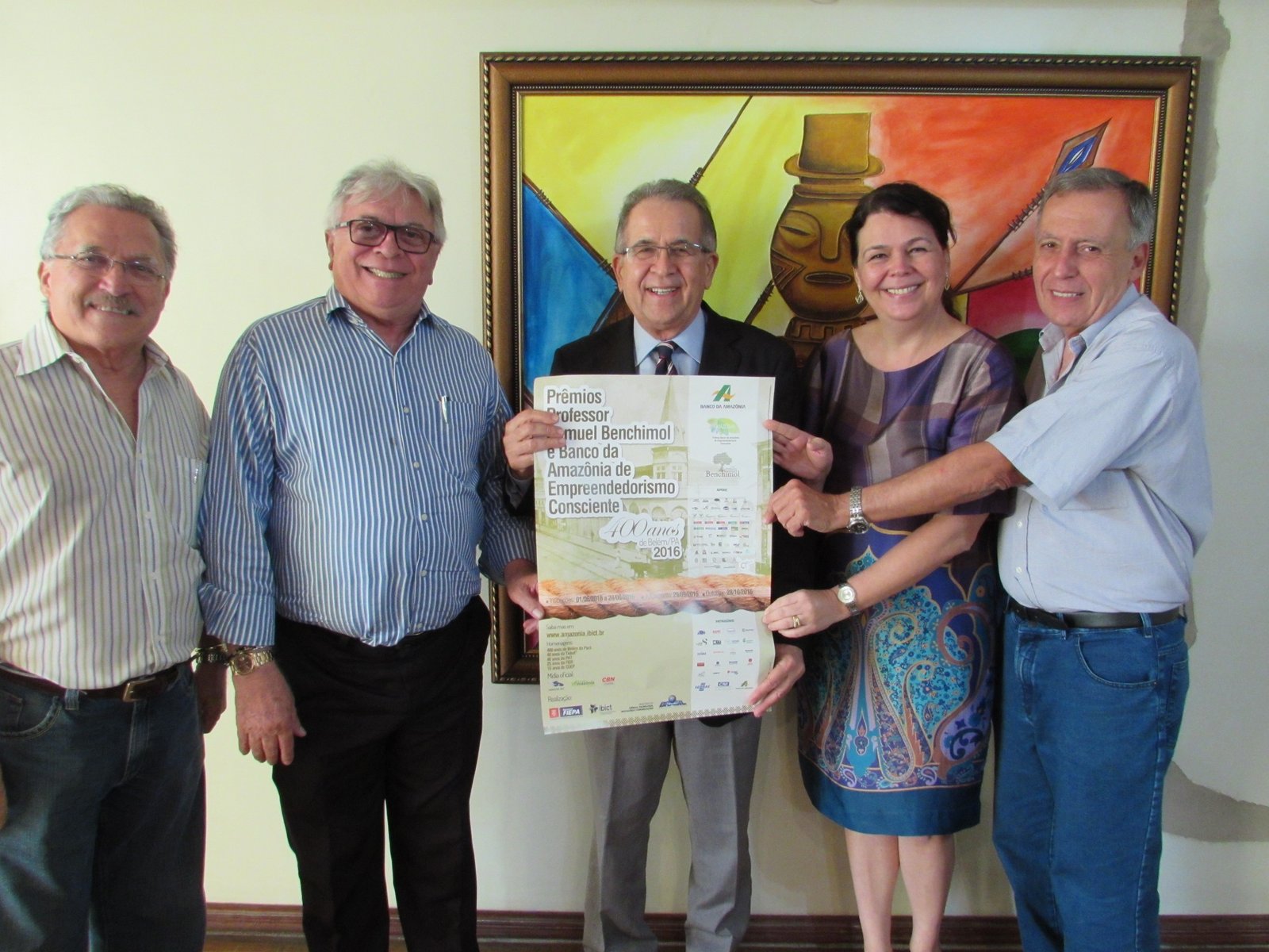 O presidente da Federação do Comércio de Bens, Serviços e Turismo do Estado do Pará (Fecomércio-PA), Sebastião Campos, recebeu na tarde de ontem (02) a visita dos diretores do Sistema FIEPA, Ivanildo Pontes, Carlos Jorge da Silva Lima, da empresária Fátima Chamma e do coordenador nacional do Prêmio Professor Samuel Benchimol e Prêmio Banco da Amazônia de Empreendedorismo Consciente, José Rincon Ferreira. A visita serviu para fazer a apresentação da edição 2016 do prêmio, que conta com apoio institucional da Fecomércio-PA. A sessão de premiação será realizada no dia 28 de outubro em Belém e, no total, serão distribuídos R$ 125 mil prêmios – R$ 25 mil para o 1º colocado em cada categoria de projetos.