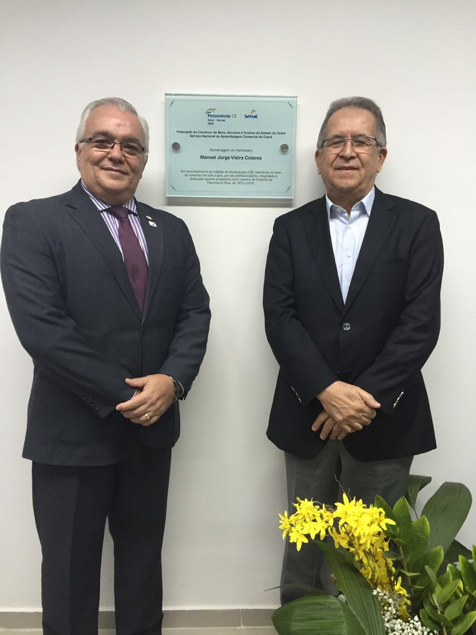 O grande líder do comércio e do sindicalismo paraense, ex presidente do Sindilojas Belém e ex vice presidente da Fecomércio-PA, Manoel Jorge Vieira Colares, recebeu uma homenagem in memorian do Sistema Fecomércio / Sesc / Senac Ceará, no último dia 23, em sua cidade natal, Maranguape (CE). A inauguração do Centro de Educação Profissional Celso Nogueira Sobrinho, do Serviço Nacional de Aprendizagem Comercial (Senac), leva o nome de Manoel Jorge Vieira Colares em seu auditório. A inauguração e homenagem foram feitas pelo presidente do Sistema Fecomércio Ceará, Luiz Gastão Bittencourt da Silva e contou com a presença de vários líderes do comércio de bens, serviços e turismo do estado, bem como a presença do atual presidente do Sindilojas Belém, Joy Colares (filho de Manoel Colares) e do presidente da Fecomércio-PA, Sebastião Campos.